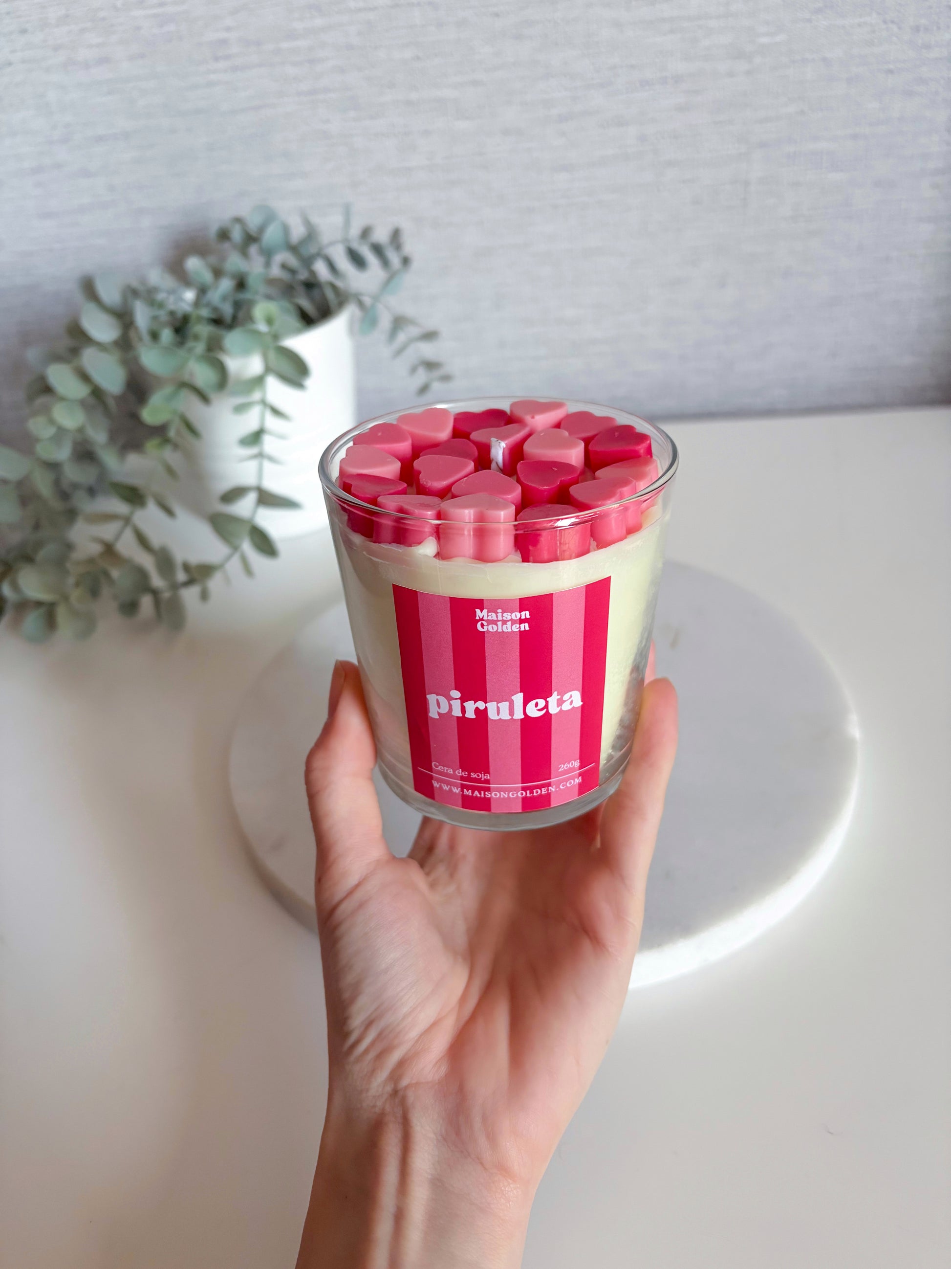 Una vela pensada para San Valentín, pero sobre todo para el amor propio, con tonalidades inspiradas en los colores de las piruletas. Un recordatorio de que cuidarte, mimarte y disfrutar de tus momentos a solas también es una forma preciosa de amar 🩷